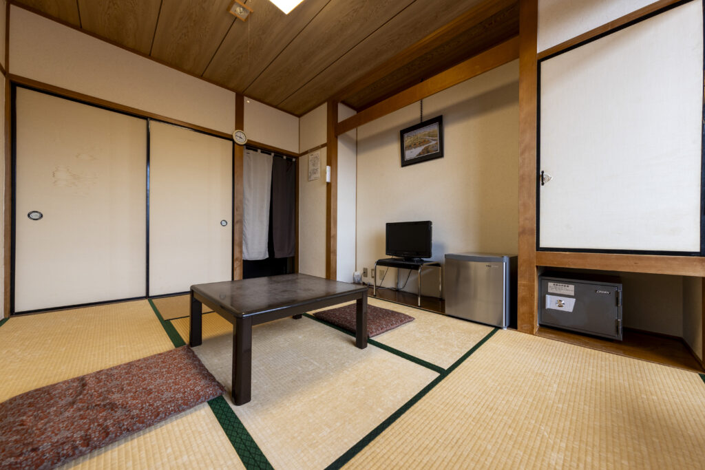 客室設備・アメニティ | 洗面・テレビ・エアコン・ポット・お茶セット・丹前・浴衣・タオル・歯ブラシ・バスタオル・ティッシュ |